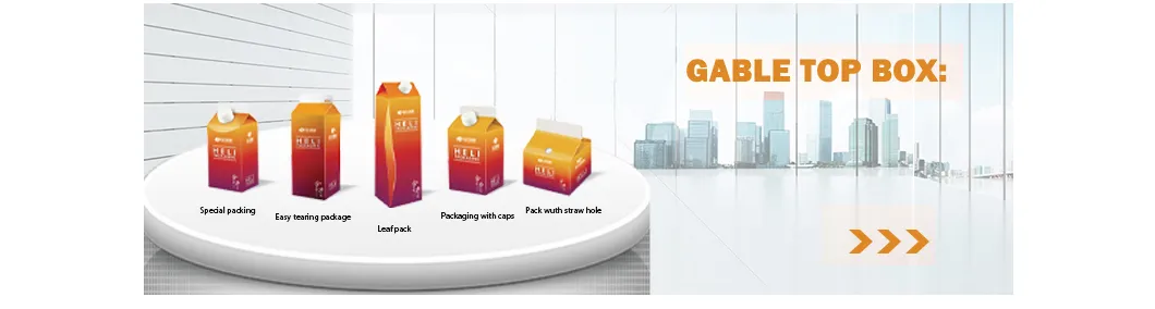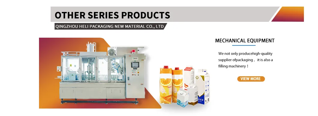 | Brick pack / Metallized brick | 100ml, 125ml, 160ml, 190ml, 200ml, 250ml, 1000ml | Milk, Milk drink, Juice, Liquor, Water |